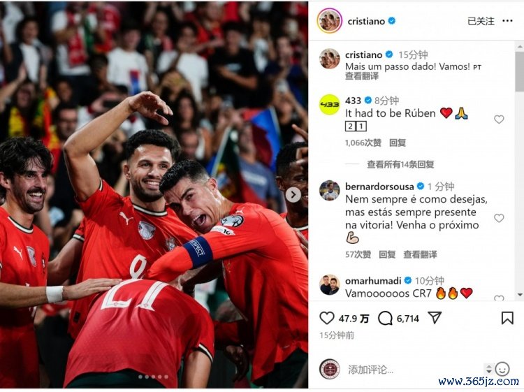 打败爱尔兰!C罗社媒晒照庆祝到手:又迈出一步,加油!