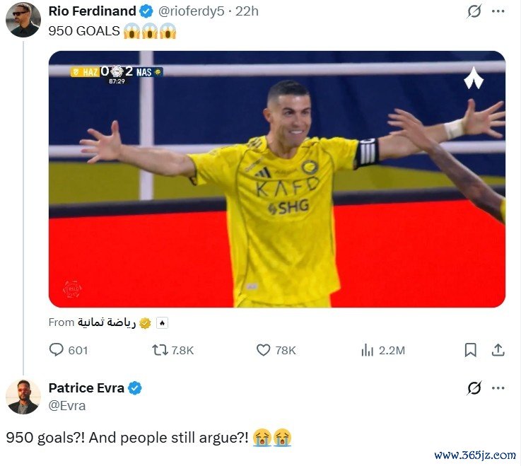 C罗950球!费迪南德惊羡C罗进球数,埃弗拉:确实还有东说念主在争论?