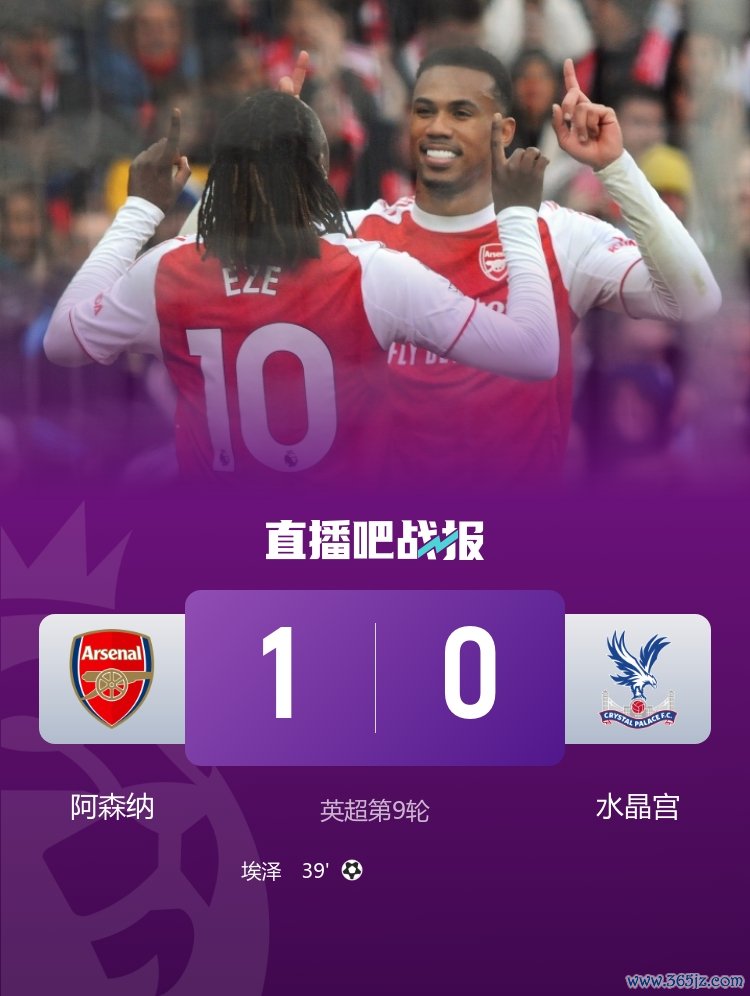 英超联赛第9轮,阿森纳1-0降服水晶宫,埃泽弑旧主。