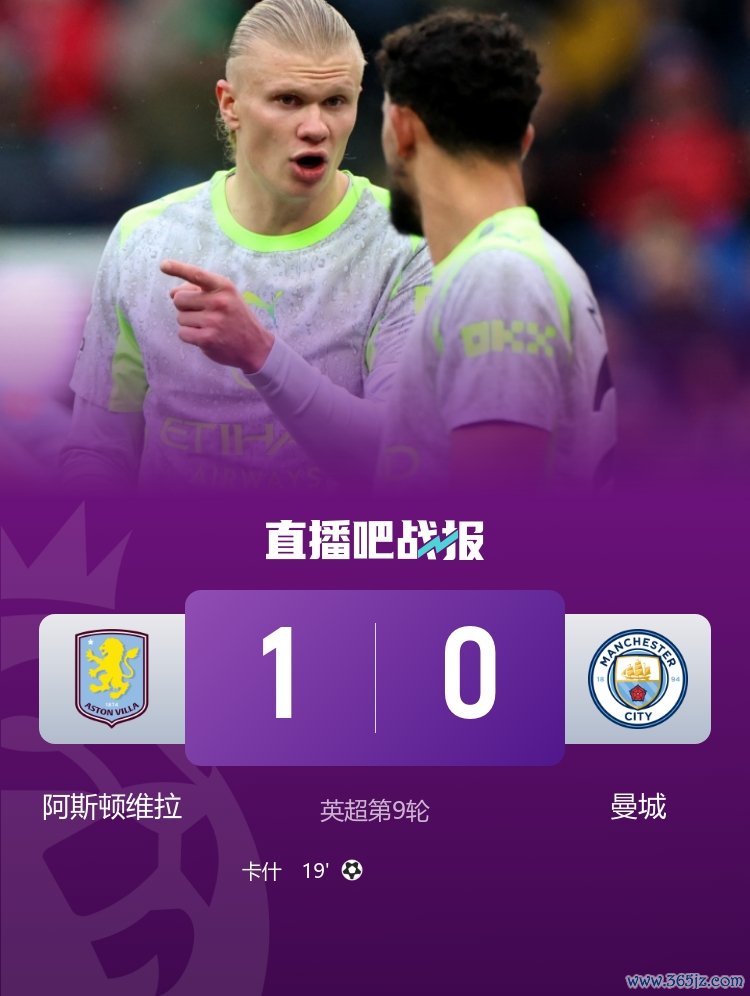 英超联赛第9轮,阿斯顿维拉1-0降服曼城,卡什制胜。