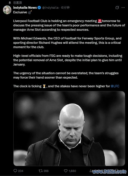 “独家爆料:据可靠音信源骄气,利物浦足球俱乐部将于未来召开紧迫会议,专题参议球队近期倒霉的说明以及主领导斯洛特的将来。