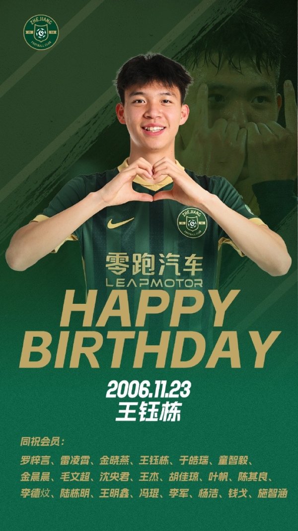 11月23日讯 今天是王钰栋19岁生辰,浙江队官方发文送道喜。 浙江队官方写说念:“十九岁的风吹开云层,你奔走的身影,向着咱们渴慕的主张。 你是浙江的青训血脉,是中国绿茵的急切期盼。盼望如山,你以年青的身姿担当;别牵挂,尽管自信、安逸地迎接新的期间。 道喜王钰栋和今天生辰的会员一又友们生辰欢欣!” 本赛季,王钰栋打入11粒中超进球,成为原土弓手王。当今,王钰栋德回身价150万欧。......