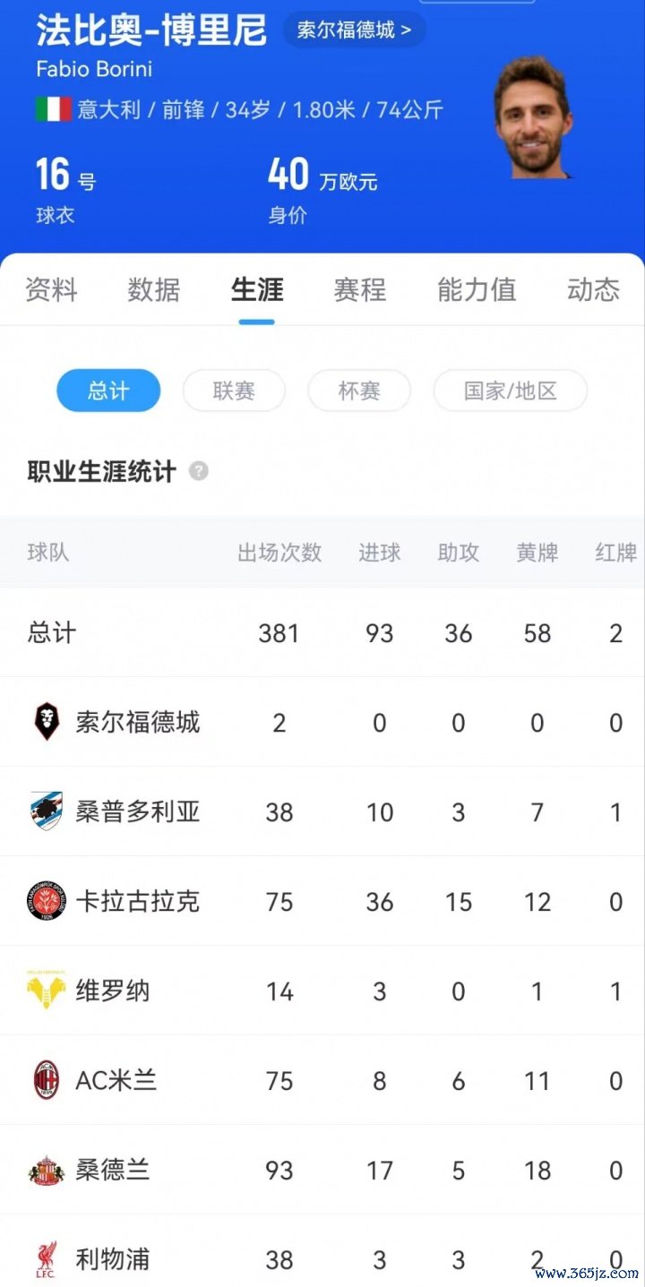 现年34岁的博里尼做事活命曾遵循于罗马、利物浦、AC米兰等队,做事活命曲折多支球队;他在桑普多利亚遵循了两年,仅上场38次。今夏,他成为解放球员并加盟索尔福德城,签下一份短期条约。