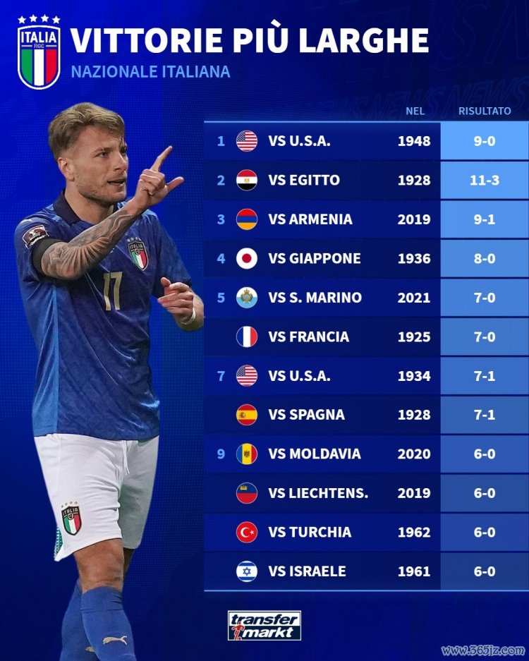 11月14日讯 北京手艺11月17日凌晨,意大利将辞世初赛临了一轮比赛中主场对阵挪威,意大利此役需要至少净胜挪威9球,武艺径直出线。德国转会商场列出了意大利队史最大比分红功榜单。
