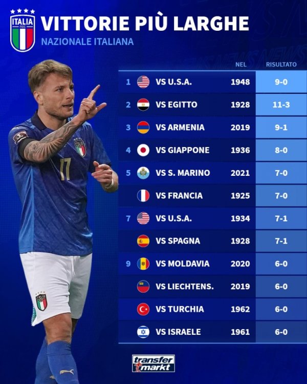 11月14日讯 北京手艺11月17日凌晨,意大利将辞世初赛临了一轮比赛中主场对阵挪威,意大利此役需要至少净胜挪威9球,武艺径直出线。德国转会商场列出了意大利队史最大比分红功榜单。 意大利队史最大比分红功名次: 意大利 9-0 好意思国(1948) 意大利 11-3 埃及(1928) 意大利 9-1 亚好意思尼亚(2019) 意大利 8-0 日本(1936) 意大利 7-0 圣马力诺(2021) 意大利 7-0 法国(1925) 意大利 7-1 好意思国(1934) 意大利 7......