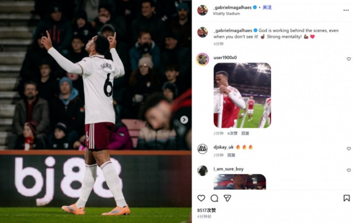 站立又破门! 加布里埃尔社媒庆祝奏效: 咱们有巨大的心态