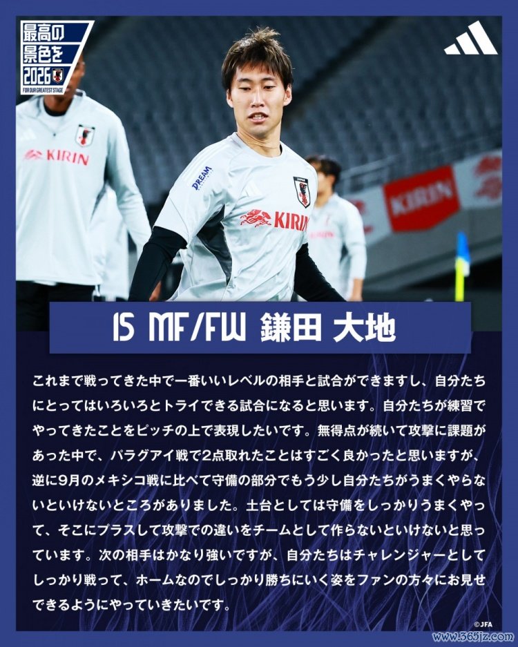 镰田地面默示:“接下来与巴西队的比赛,是咱们近期交手的敌手中水平最高的,对咱们来说,这场比赛有许多思要尝试的方面,但愿约略在比赛中将咱们考验中的推崇展现出来。此前难攻破敌手大门一直是咱们需改善的一大课题,不外在与巴拉圭的比赛中有所改不雅,打进了2球,但比起9月份与墨西哥队的比赛,咱们在提神端必须要作念得更好。”