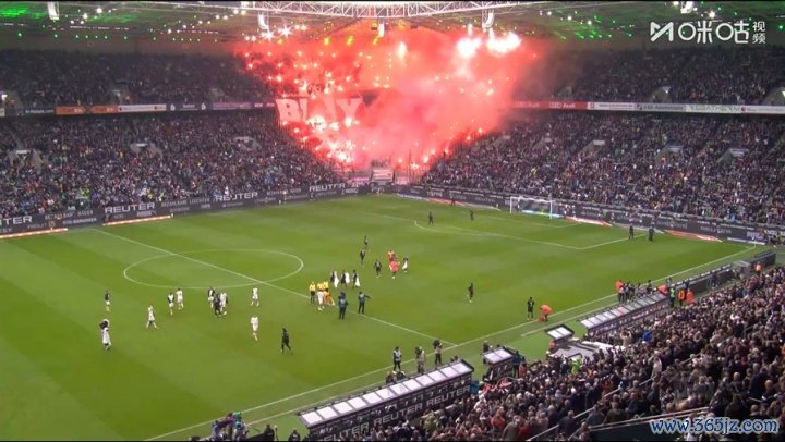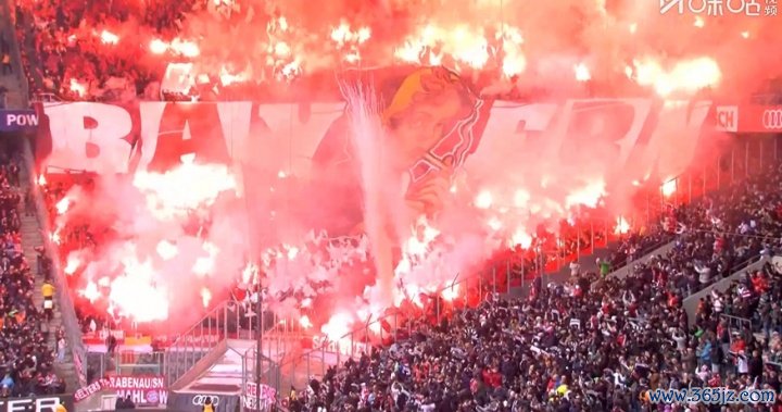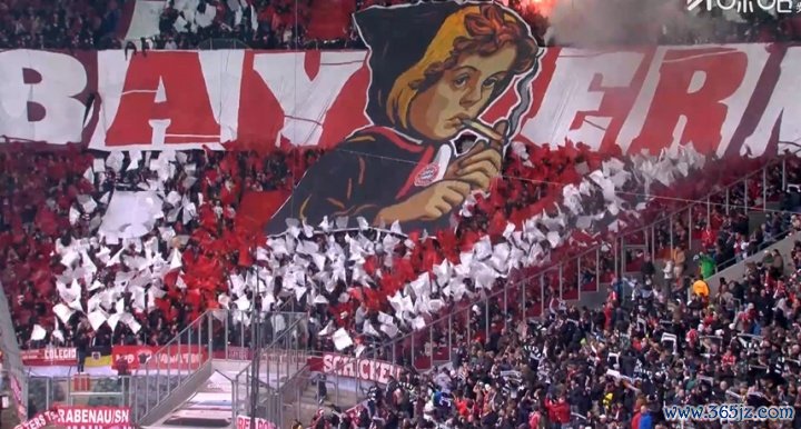 10月25日讯 本日德甲拜仁客战门兴,赛前拜仁球迷看台亮出tifo,并放烟花点火看台!