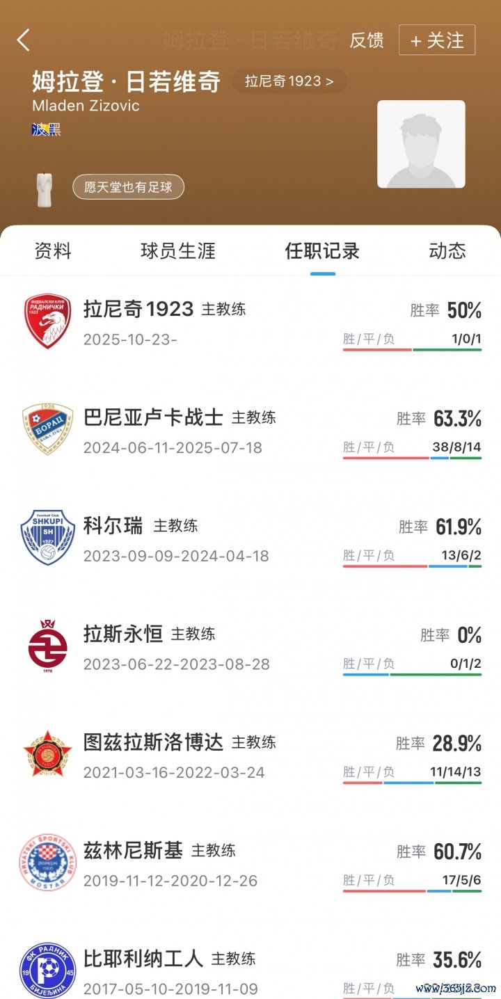 日若维奇本年10月23日刚接办拉尼奇1923,只率领球队踢了两场比赛。