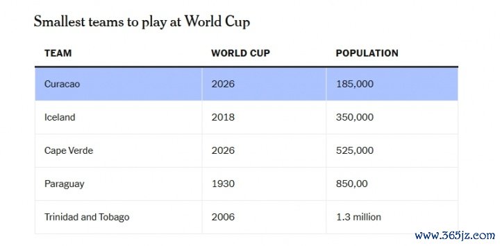 遗迹年!参加寰球杯东谈主口:库拉索超冰岛成为第一少!佛得角第三少