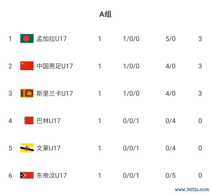 当今积分榜上,中国队以3分位列第2,以净胜球的缺堕逾期孟加拉U16。