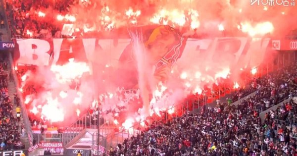 10月25日讯 本日德甲拜仁客战门兴,赛前拜仁球迷看台亮出tifo,并放烟花点火看台!......