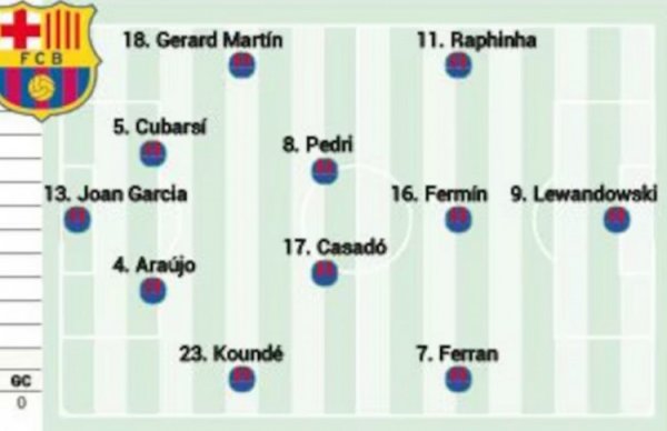 9月14日讯 北京技术来日凌晨3点,巴萨将在西甲第四轮比赛中主场对阵瓦伦西亚。 西班牙媒体《阿斯报》瞻望了巴萨此役的首发声势,莱万、费兰-托雷斯、拉菲尼亚构成锋线三叉戟,卡萨多则在中场首发。 《阿斯报》瞻望巴萨对阵瓦伦西亚首发 门将:霍安-加西亚 后卫:杰拉德-马丁、库巴西、阿劳霍、孔德 中场:佩德里、卡萨多、费尔明 时尚:拉菲尼亚、莱万、费兰-托雷斯......