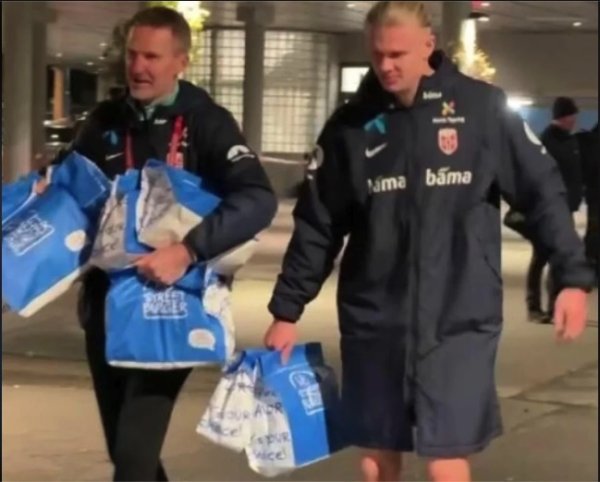11月14日讯 凌晨欧洲区世初赛,挪威4-1投降爱沙尼亚,基本锁定了来岁世初赛的正赛席位。 赛后哈兰德被拍到和别称球队责任主说念主员从球场外拎着几大袋芝士汉堡,数目约莫有60-70个,回到更衣室准备和队友们庆祝告捷。......