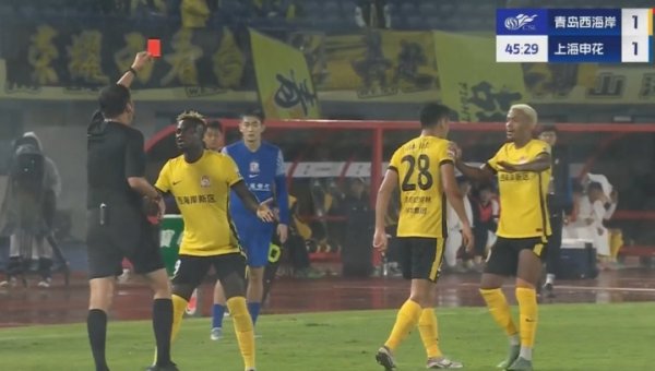 10月17日讯 申花vs西海岸比赛第45分钟,张呈栋由于边裁争议举旗追着边裁骂。 张呈栋被主裁出示黄牌后仍不依不饶,临了被平直红牌罚下,西海岸剩9东谈主! 张呈栋挟恨的判罚,边裁过早举旗↓......