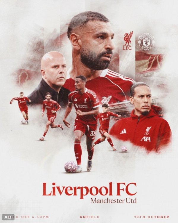 10月19日讯 本周日,利物浦将在主场对阵曼联,利物浦在俱乐部官方社媒发布了赛前海报。 比赛前,利物浦在俱乐部官方社媒发布海报为本场“双红会”预热,主帅斯洛特、萨拉赫、范迪克、索博斯洛伊、维尔茨、赫拉芬贝赫、科尔克兹出镜,并配文:“安菲尔德比赛日,赤军加油!”......