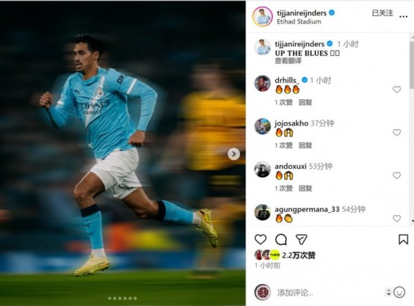 直播吧11月6日讯欧冠联赛阶段第四轮比赛,赖因德斯送出2记助攻,匡助曼城主场4-1打败多特。 赖因德斯社媒晒出比赛像片,庆祝球队取胜,配文:“加油蓝月。”......