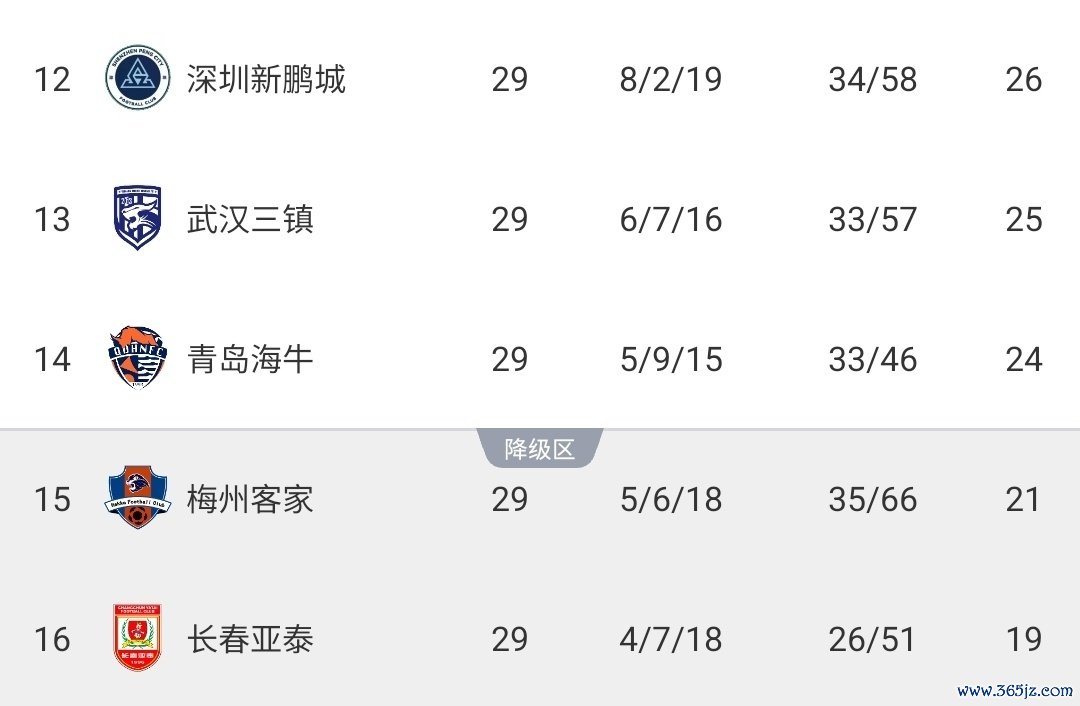 亚泰已左迁!中超保级方位:海牛末轮不败即保级,梅州必须赢球