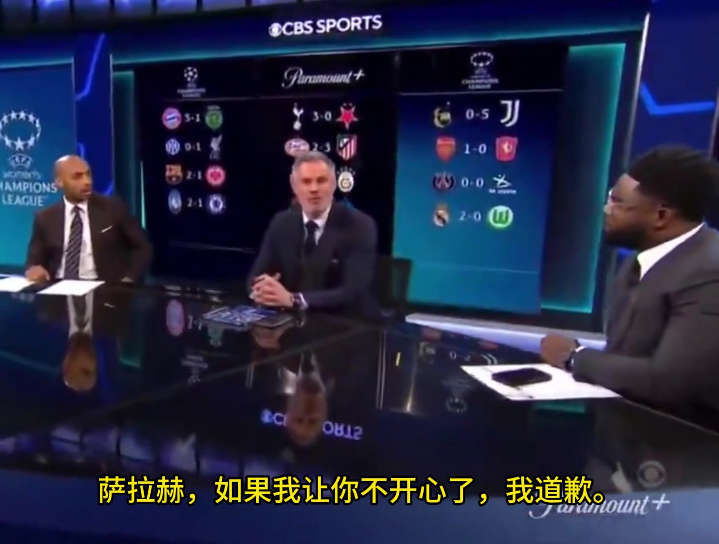 本周,卡拉格与理查兹、亨利及主抓东谈主凯特·斯科特一同照常出当前CBS体育的欧冠节目中。在询查完萨拉赫的爆炸性言论后,理查兹转向卡拉格问谈:“你是否舒心向穆萨拉赫谈歉,并对任何不敬的言论致歉?你仅仅出于爱护,仅仅从球迷角度,来吧,对着镜头说出来。”