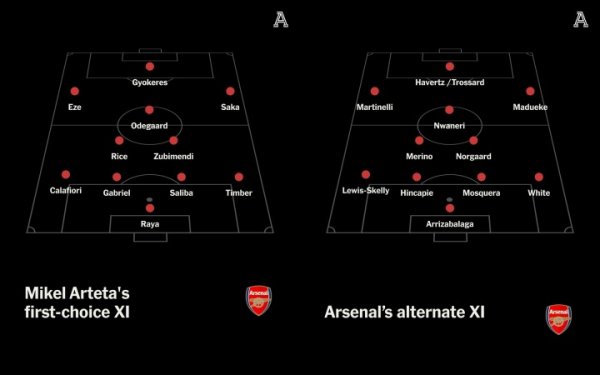 09月19日讯 The Athletic撰文列出了阿森纳的两套首发,展示了球队的威望深度,全队总身价13.3亿欧。此外,TA还瞻望了一下本周末阿森纳出战曼城时,首发11东谈主可能的列阵。 TA列阿森纳主力11东谈主: 时尚:埃泽、约克雷斯、萨卡 中场:厄德高、赖斯、苏维门迪 后卫:卡拉菲奥里、加布里埃尔、萨利巴、廷伯 门将:拉亚 TA列阿森纳第二套首发11东谈主: 时尚:马丁内利、哈弗茨(或特罗萨德)、马杜埃凯 中场:恩瓦内里、梅里诺、诺尔高 后卫:斯凯利、因卡皮耶、莫斯克拉......