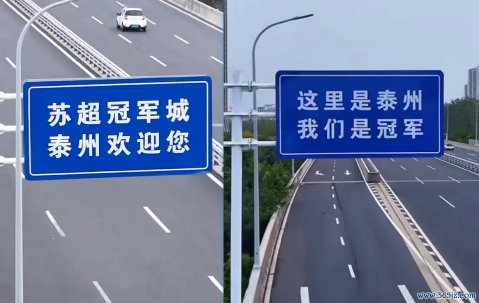 最近,泰州的国谈、快速路、高架、纯正进口等电子屏集体“上新”,全部换上了“苏超冠军城,泰州接待您”“苏超黑马,冠军泰州”等字样。