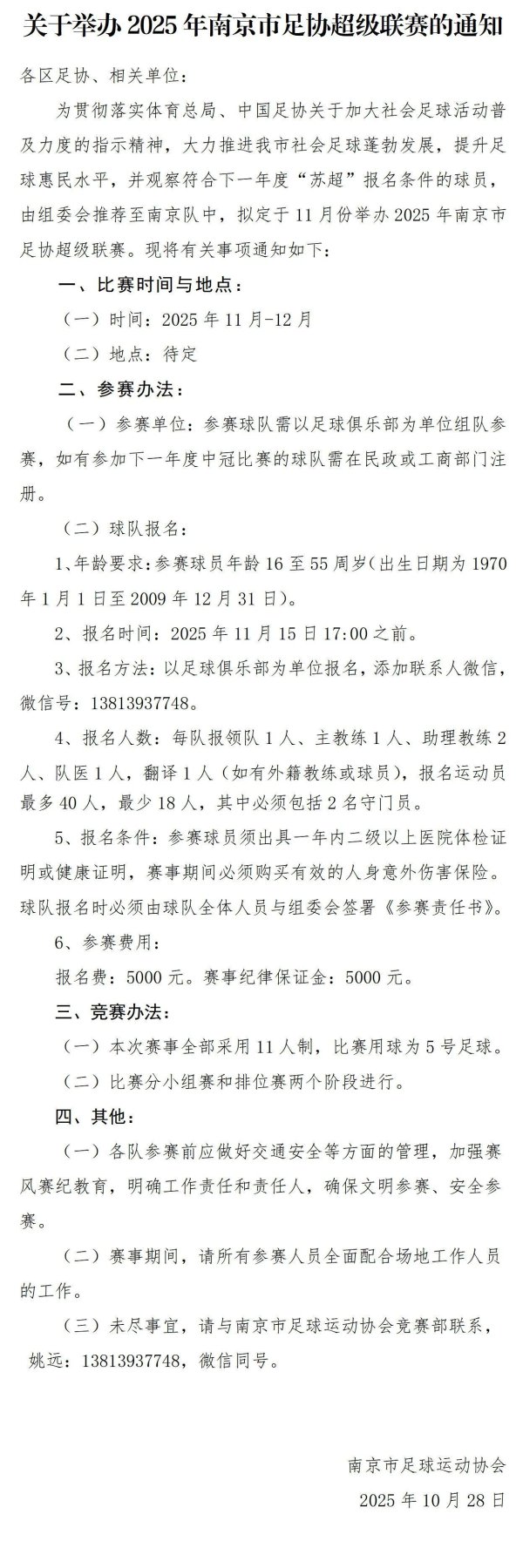 扬子晚报网10月28日讯(记者 丁皓宇)南京市足协当天下发对于举办2025年南京市足协超等联赛的奉告,具体如下: 开端:扬子晚报详细南京市足协微信公众号......
